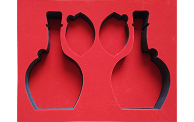 2.2.酒瓶是黑色,外盒是彩盒,為了映襯酒瓶,建議客戶在PE材料上面覆一層大紅色絨布,紅色絨布這樣看起來紅紅火火,讓人看這個(gè)很喜愛。另外,表面覆絨后,產(chǎn)品檔次也就提升上去了!